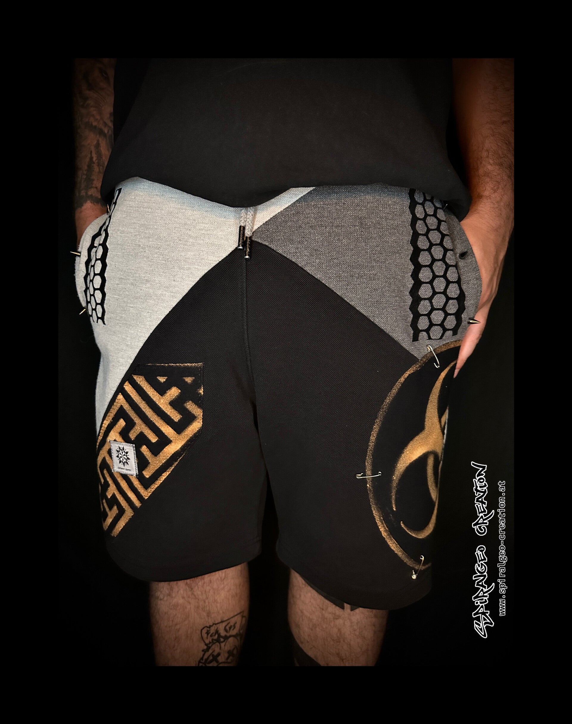 Thick woven cotton / comfortable wear / men's cut / with flock foil / upcycled / hand coloured / details with spikes