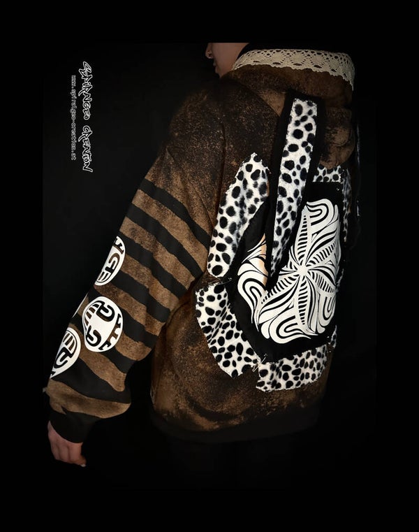 Quality Jersey Sweater/ comfortable wear / men's cut / with flock foil / upcycled / details with crochet lace / hand coloured